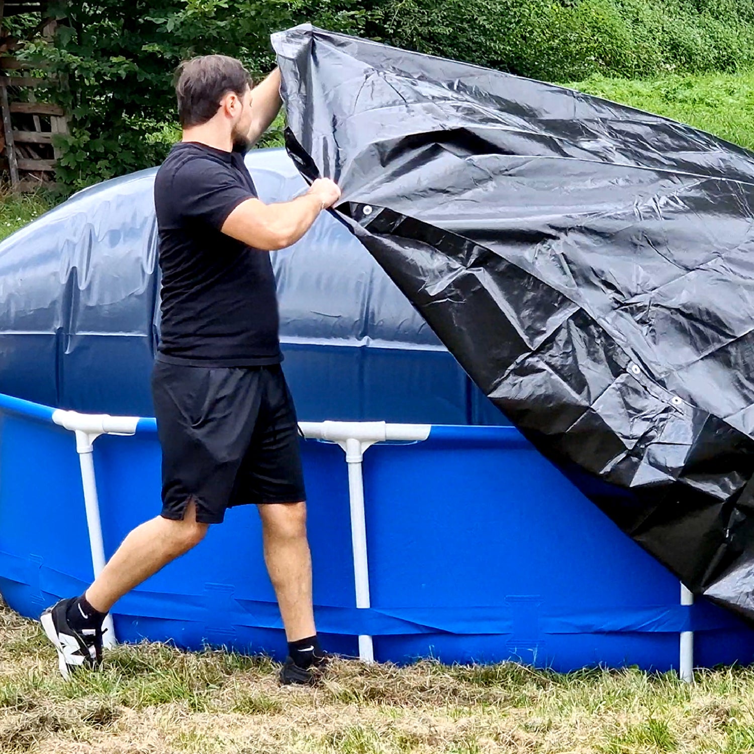 - Legen Sie Ihre Poolplane über den Pool und das Luftkissen.